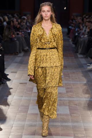 Her fall 2016 ready-to-wear collection was filled with 70s flair: belted jumpsuits, silk blouses, culottes, and raw denim jeans.