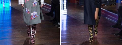 Kenzo’s fall 2016 ready-to-wear collection boots? Not for the faint of heart: Animal-print finishes in bold colors and blocky kitten heels. These are knee-high boots that will get you noticed, no matter what the fall weather brings.