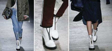 And in case white leather isn’t quite your thing—or the climate where you live isn’t conducive to it—Rag & Bone also offered these super shiny, sleek patent leather versions. Notice the detailing: the eyelets on the left boot are a matte gold while the boot on the right has white stitching around the top of the sole.
